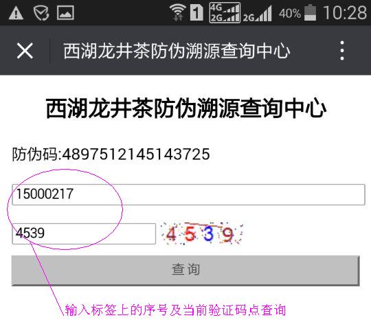 特點(diǎn)說明:此處的追溯信息不詳細(xì)是因?yàn)閽呙璧倪@個(gè)標(biāo)簽是我們車間的半成品,未經(jīng)龍井茶管理機(jī)構(gòu)錄入更加詳細(xì)的信息。