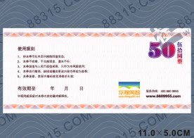 代金券除了普通膠印外,還可以采用描金、燙印、UV凹凸印刷等特殊加工工藝,從而提高卡片檔次,增強其防偽性能。