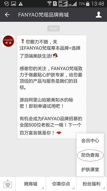 進(jìn)入公眾號(hào)微平臺(tái),在右下角有防偽查詢,點(diǎn)擊進(jìn)入